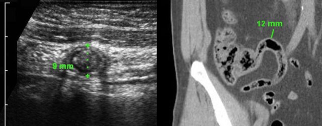 US of normal vs inflamed appendix