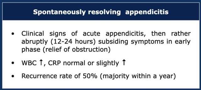 The increasing use of US and CT in patients with RLQ pain has learned that this phenomenon of so-called “spontaneously resolving appendicitis” is not rare.