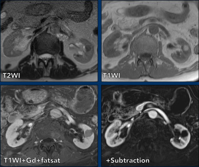 New in the IIF section are cystic masses that are heterogeneously hyperintense on unenhanced fat saturated T1W-imaging.