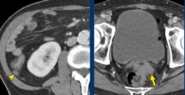 - Vessel wall irregularity of the SMV is better appreciated on this coronal reformat (arrow).
