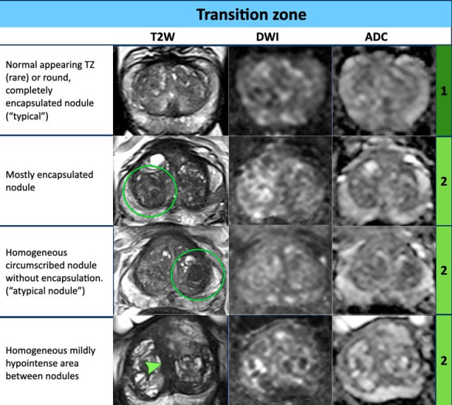 - Round, completely encapsulated nodules are now assigned as PI-RADS score 1.