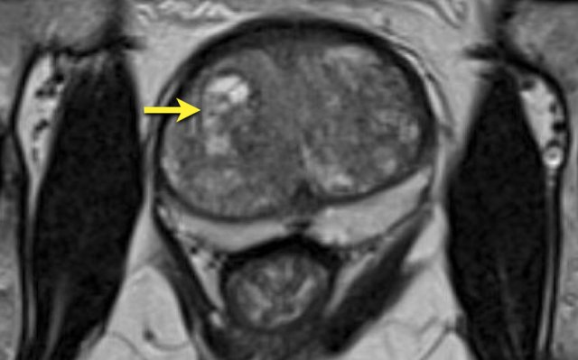 Marked signal change in a patient aged 69 years old showed a raised PSA