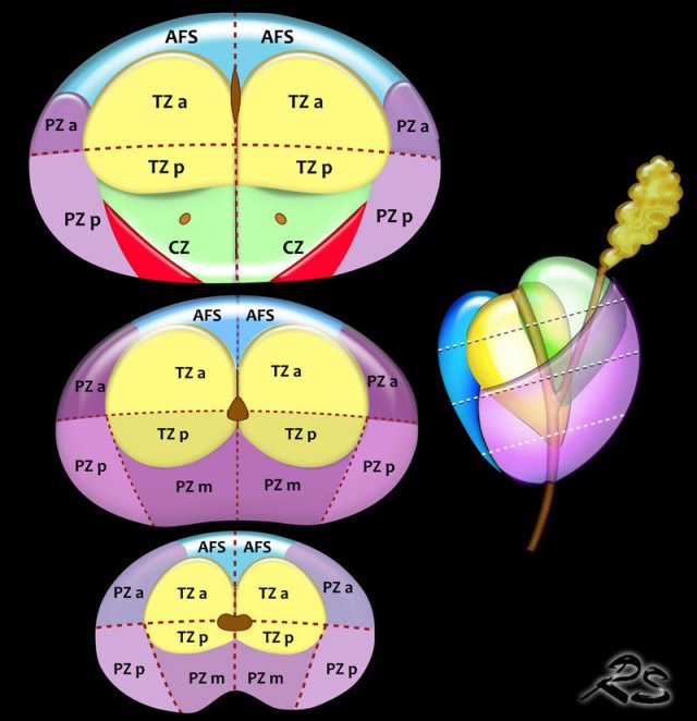 - PZ: anterior, posteromedial and posterolateral peripheral zone
