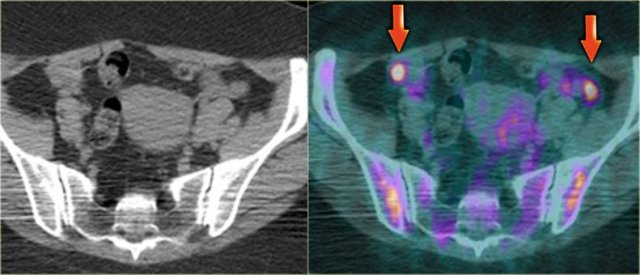 In some pre-menopausal women the normal ovaries may be avidly PET positive, depending on the date in the menstrual cycle.