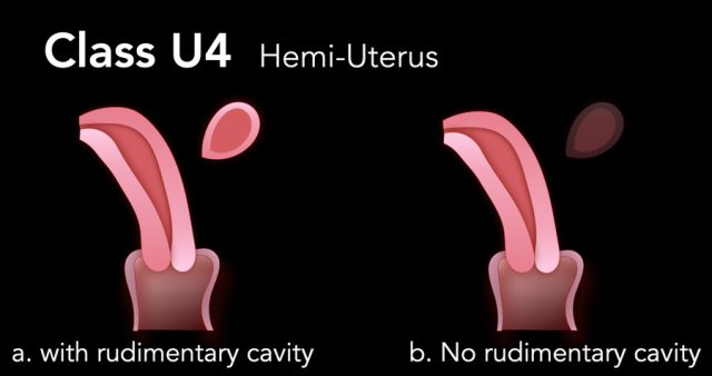 Class U4 is a hemi-uterus as a result of unilateral failure of formation of the Müllerian duct.