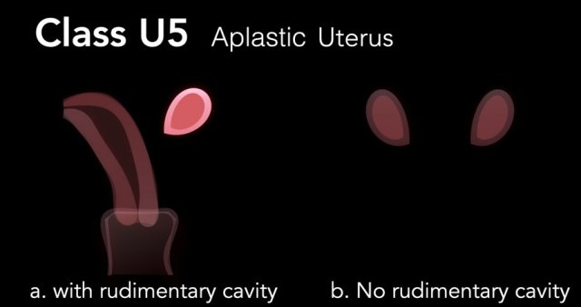 Class U5 is an aplastic uterus as a result of bilateral failure of formation of the Müllerian ducts.