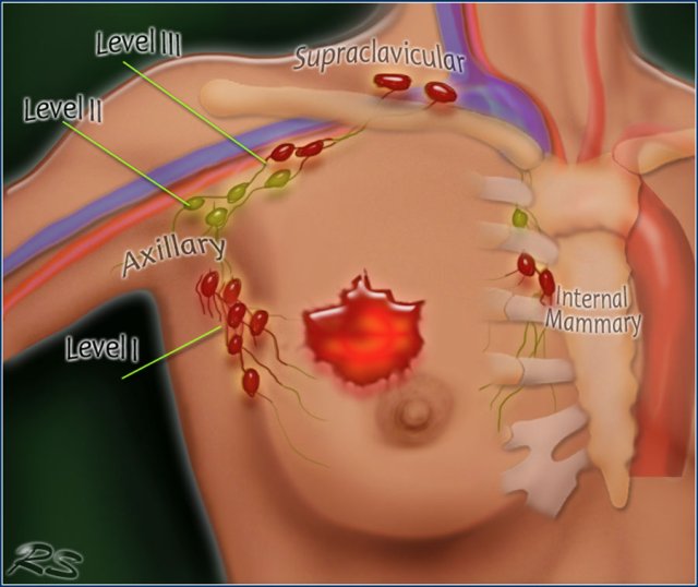 Multiple axillary nodes were found but no systemic metastases.
