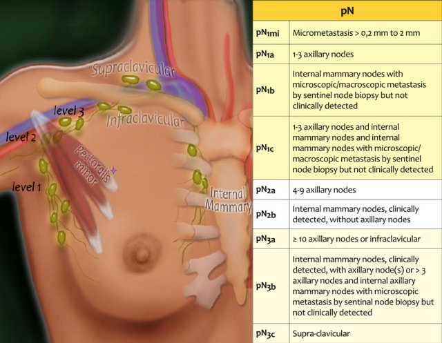 - N0-1 : no nodes or involvement of <4 axillary nodes