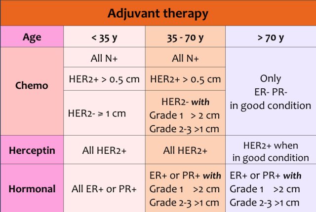 Adjuvant therapy can consist of chemotherapy and/or herceptin and/or hormonal therapy.