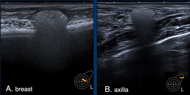 Ultrasound guided biopsy was performed and this mass proved to be a fibroadenoma.