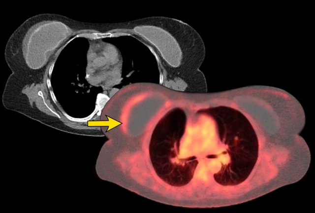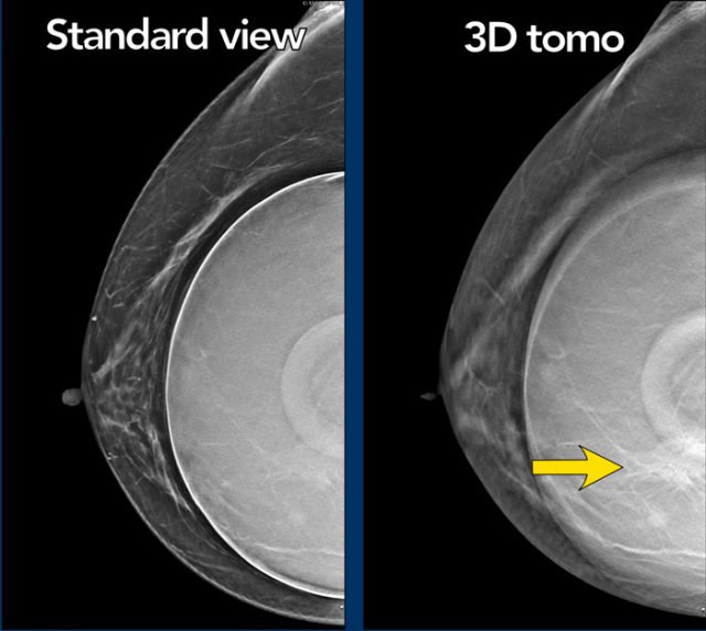 There is a mass, which is more obvious on the tomosynthesis (image 56 out of 73).