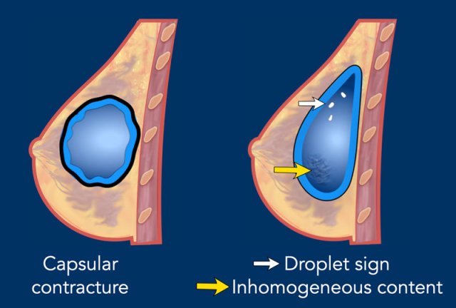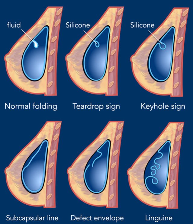 This makes it difficult to detect on clinical exam or mammography. There are many signs described that indicate intracapsular rupture, but it all comes down to silicone between the capsule and the envelope.