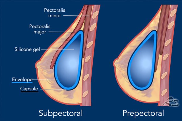 - Dual plane - a combination of both - most of the implant is subpectoral, but the inferolateral part is not covered by muscle.