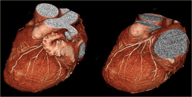 On volume rendered images the left atrial appendage needs to be removed to get a good look on the LCA.