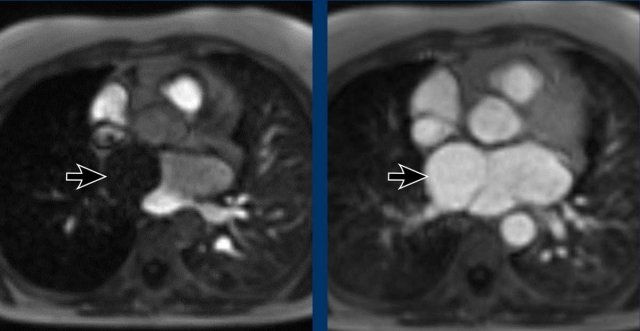 DD: Right partial anomalous pulmonary venous return (PAPVR). - Lateral to the aortic arch (axial view)