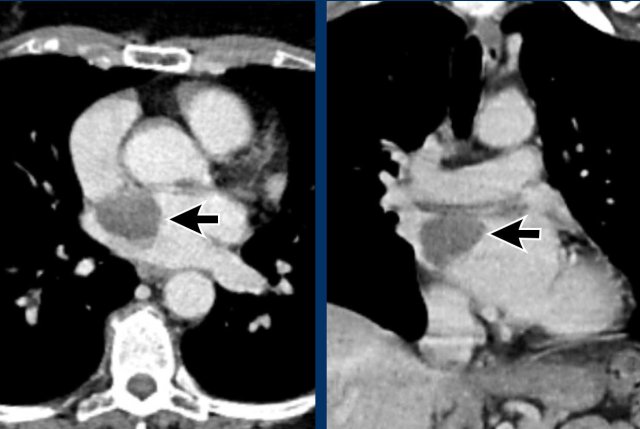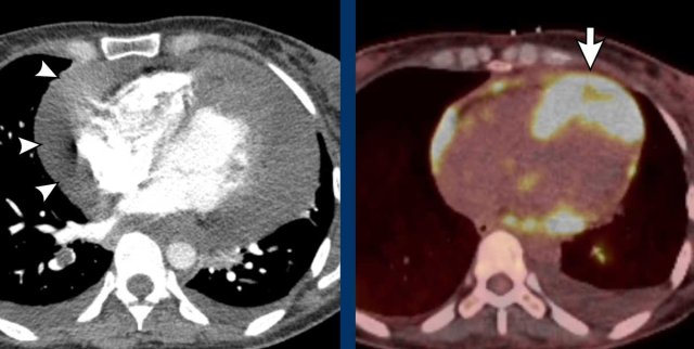 Non-ECG gated chest CT does not visualize the cardiac valves well, however, sometimes abnormalities can be seen.