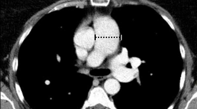 at the level of the isthmus and the proximal left pulmonary artery.