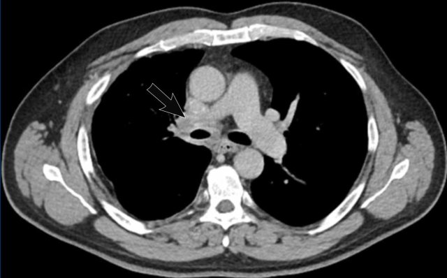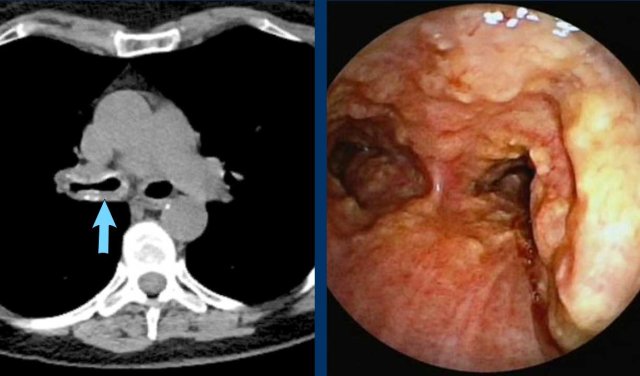 the trachea and main bronchi are involved, CT imaging may show nonspecific