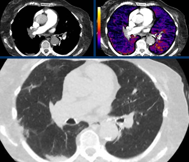 - Corresponding perfusion defects at subtraction iodine mapping.