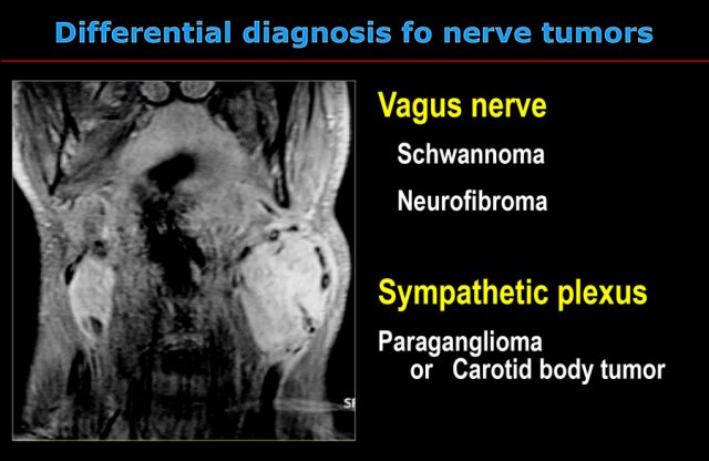 - Brachial plexus. Lesions coming from the cervico-brachial plexus are expected to be found in a more paraspinal location.