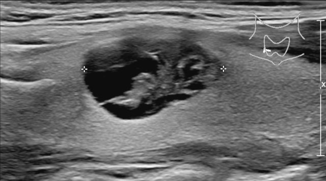 Mixed cystic/solid