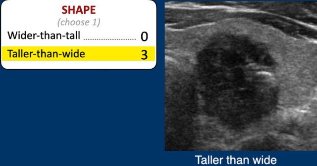 A taller-than-wide shape is a strong predictor of malignancy, and therefore gets 3 points.