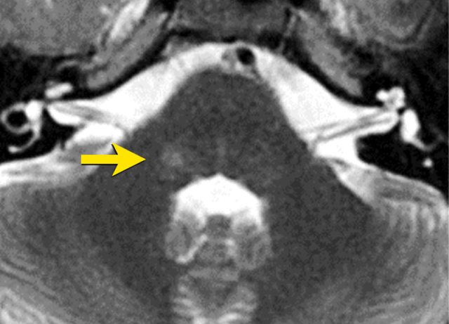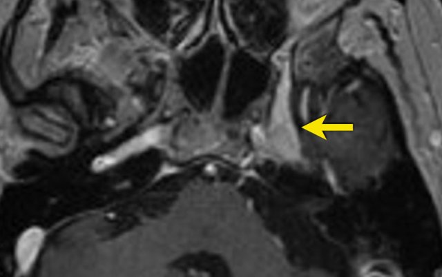 This image is of a 26 year old male who developed slowly progressive facial hypesthesy on the right.