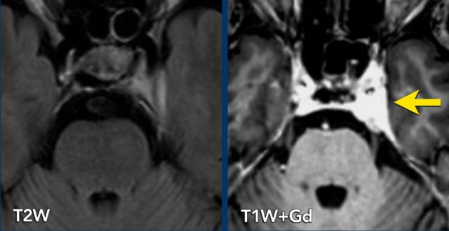 These images are of a 49-year old male with sensory problems in the left side of his face and pressure behind his left eye.