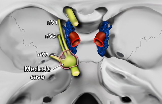 cisterns, the trigeminal nerve enters Meckel’s cave, which forms the third