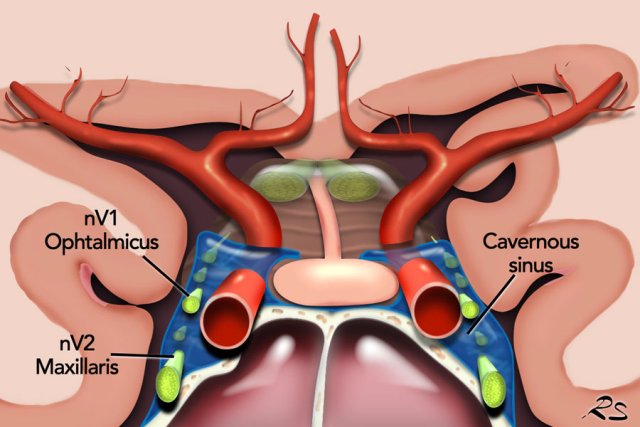 cavernous sinus. Instead it leaves Meckel’s cave – together with the motor