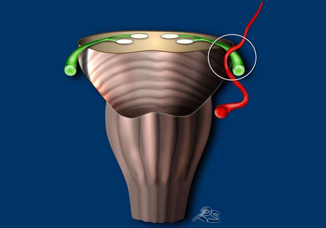 - The contact between blood vessel and nerve occurs in the root entry zone of the nerve.