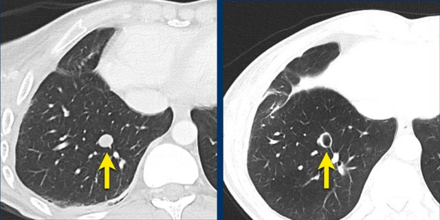 The CT image with maximum intensity projection of a 34-year-old female with miliary lung metastases of ovarian cancer.