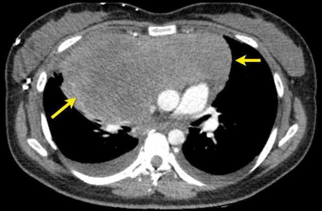 CT images in a 63-year-old male with malignant pleural mesothelioma.