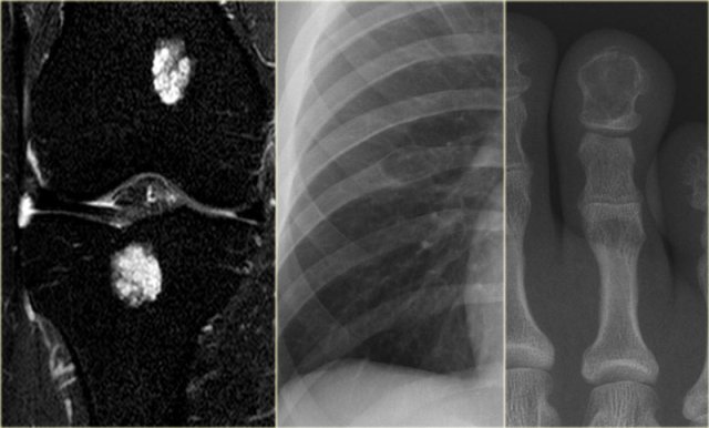 - solitary lesion: chondrotumor, GCT and lymphoma.