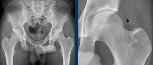 On the AP view the femoral head-neck region looks normal.