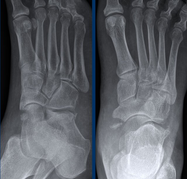 33 year old patient with a foot injury and swollen midfoot.
