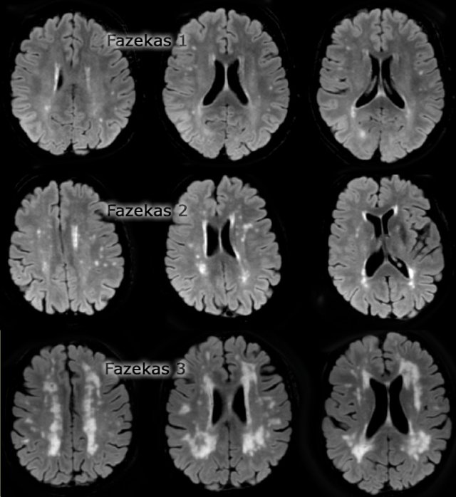 FLAIR images of the same patient show Fazekas 2 white matter hyprintensities.