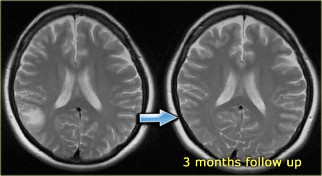 When the proces continues it may lead to infarction and development of cytotoxic edema next to the vasogenic edema.