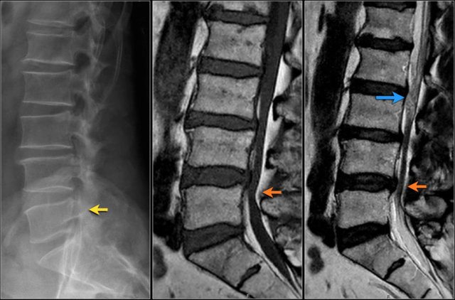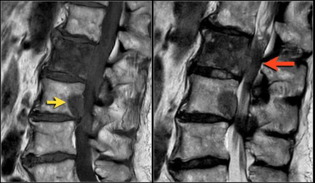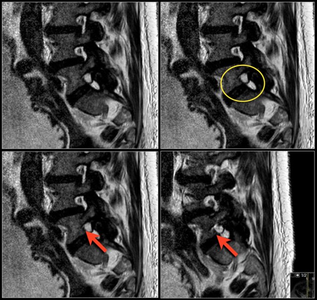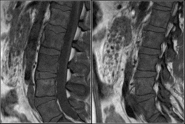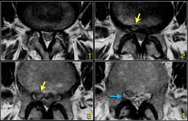 Before you start looking for any hernias, first take a good look at the prevertebral tissues and bone marrow.