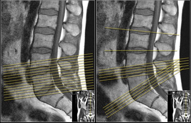 The MRI protocol for examination of the lumbar spine in patients with symptoms of nerve compression is quite simple.