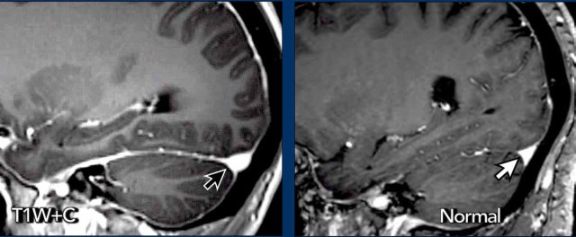 On the post-surgery MRI there is almost complete normalization.