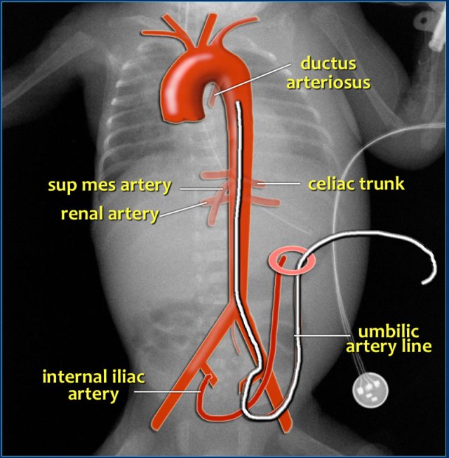 Umbilical artery catheterization provides direct access to the arterial system and allows accurate measurement of arterial blood pressure, blood sampling and intravascular access for fluids and medications.