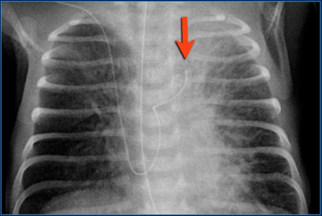 - The umbilical venous line is too deep and positioned in the right atrium.