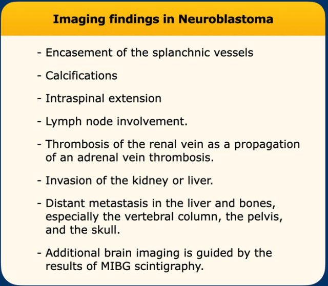 These findings are more compatible with a neuroblastoma than a nephroblastoma.