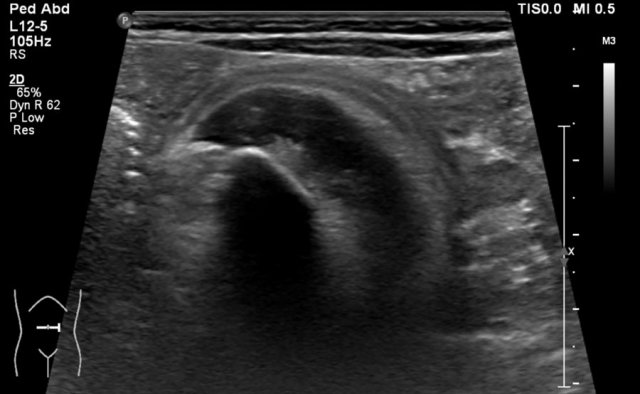 Ultrasound of a fifteen-month-old boy, who was first suspected of having a tumor in the left kidney.