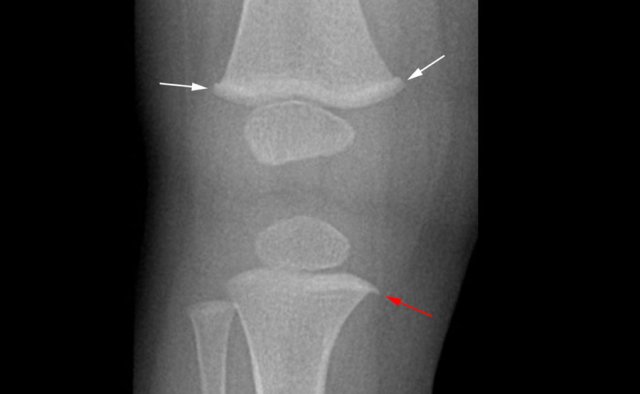 Menke's disease is a very uncommon inborn error of metabolism. In these patient's small metaphyseal hooks can be seen that resemble corner fractures.