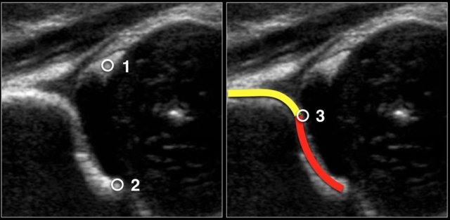 When you perform the ultrasound examination, make sure that these three points can be identified on the image.