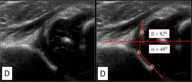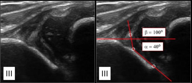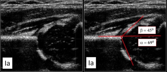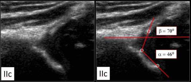 Actually, for classification purposes the beta angle is only used to differentiate between type Ia and Ib (both normal hips) and between type IIc and type D)