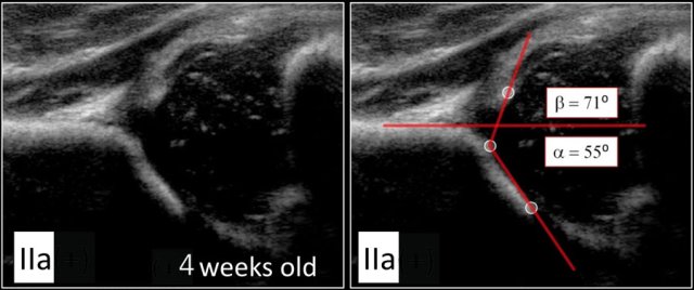 At the age of 6 weeks the same findings result in a type IIa(+).