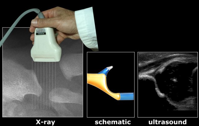 With ultrasound we are looking at the same anatomic structures as on the x-ray.